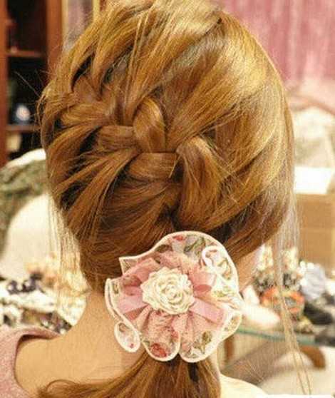 6、最后把发尾搭在右侧肩上,再搭配上精美的花朵发饰就OK啦!