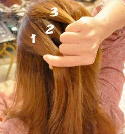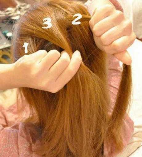 3、然后把发束分区为三分,进行编织简单的三股发辫形状。