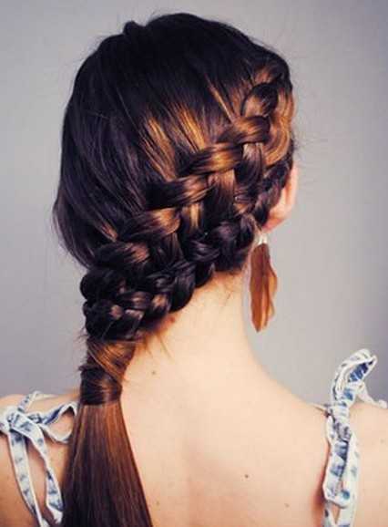 韩国里十分流行个性的编发发型,多束麻花辫的精致打造下,营造出最时尚之美,最后低扎的马尾,凸显那么几分优雅女性魅力。