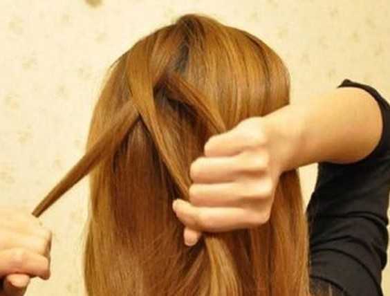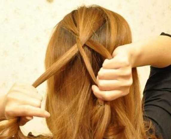 1、先是在顶部取几束头发,开始编织简单的三股发辫。