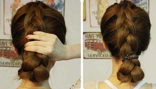 步骤四:将编好的发辫内折起来,用皮筋绑住。