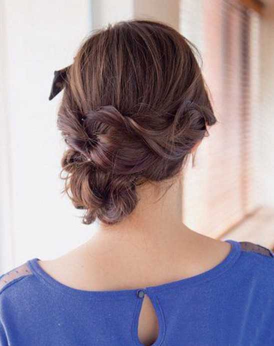3、然后把发束扭转一圈后,就盘出花苞头的形状,使用发夹固定好,意头发要松散随意的感觉。