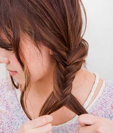 步骤六:编织的过程中需要注意下辫子的松紧,想要打造出慵懒的鱼骨造型不宜过紧。