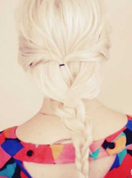 4、然后把头发编织简单的三股麻花发辫并扎好。