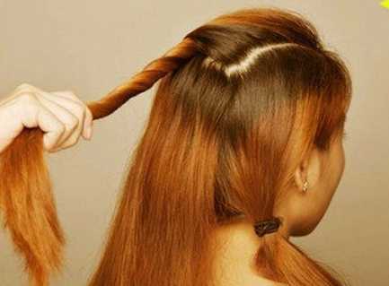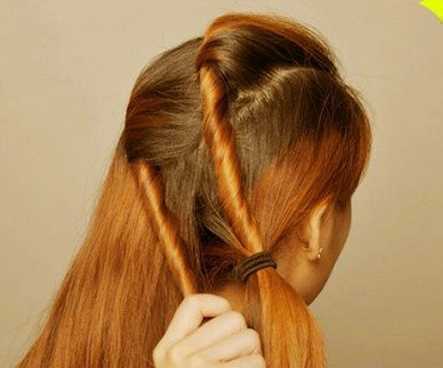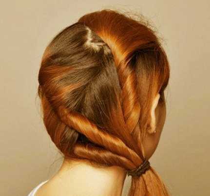 4、以此类推将全部头发进行三股修剪并往侧处扎好。