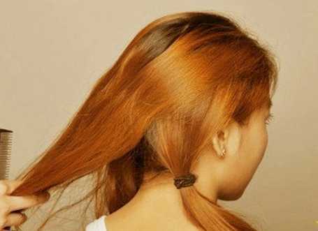 1、首先简单梳理头发,再将头发如图上分区好,而右侧下部分使用橡皮筋扎出马尾形状。