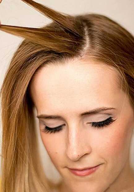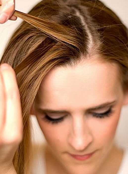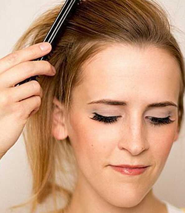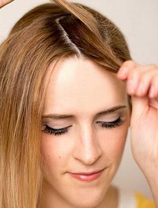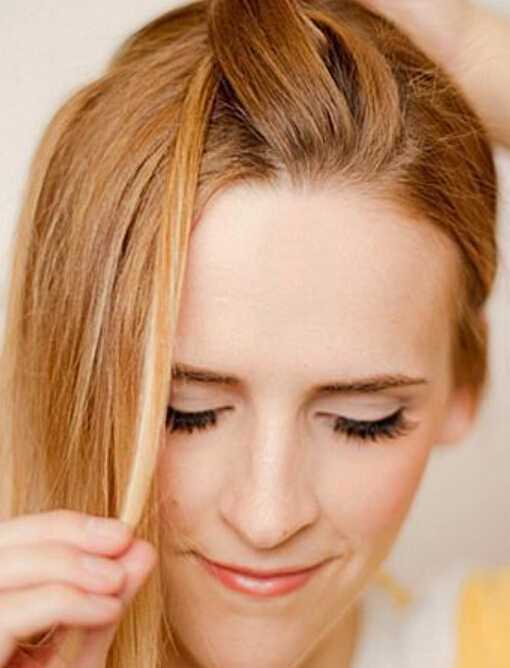 步骤六:把下面的一小束头发往前拉,上面的头发往侧下。