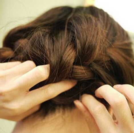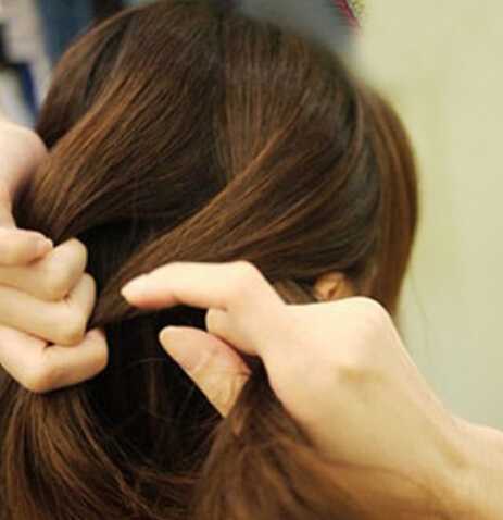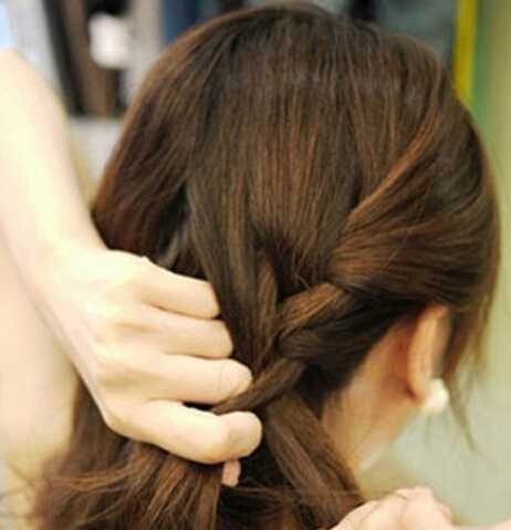 步骤3、编的过程中要从下方加入头发一起编,有点像蜈蚣辫的编法,注意编的时候不用拉得太紧,否则就会显得很死板咯。