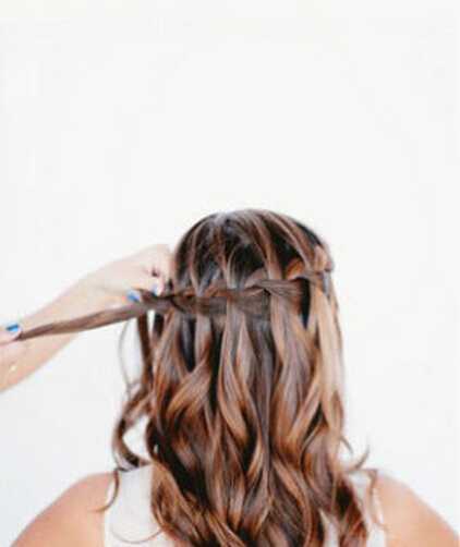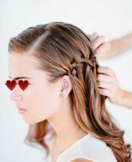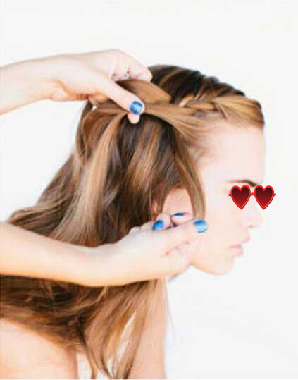 tips5、每编一次,分别从麻花辫左右两侧加入一股头发和原来的头发合成一股,每一步在下方的头发都要自然放下来;