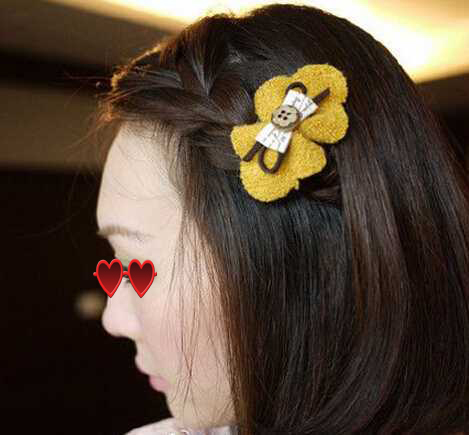 如果觉得单调,也可以在蜈蚣辫尾端夹一个漂亮的发夹,看,一个甜美迷人的刘海蜈蚣辫短发就出来了,好看吧!