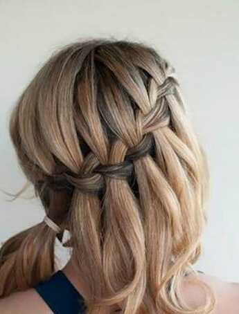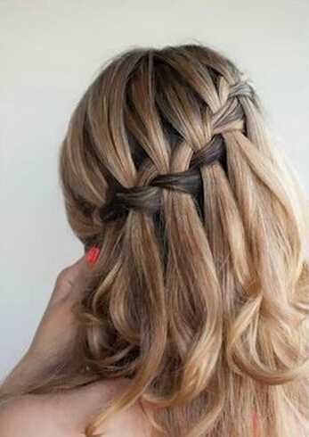 非常简单的瀑布编发,从后面看,优雅甜美,若头发长一点,则仙气十足,若中长或短发则会优雅带点俏皮。