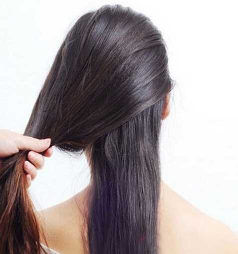 step1、把长发梳理好,再把头发分为上下两个区域,再将上区域如图所示往斜拉;