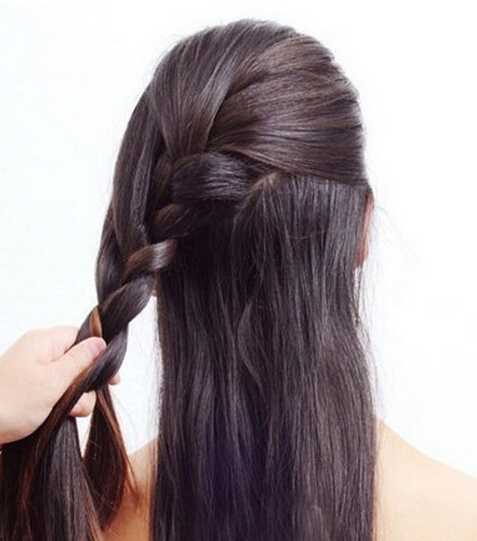 step2、从上半部分头发拿起三股头发,要留点头发哦;