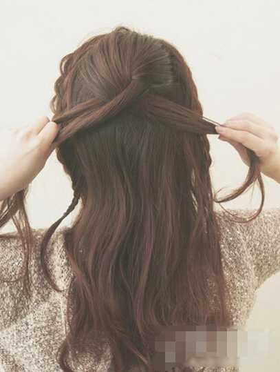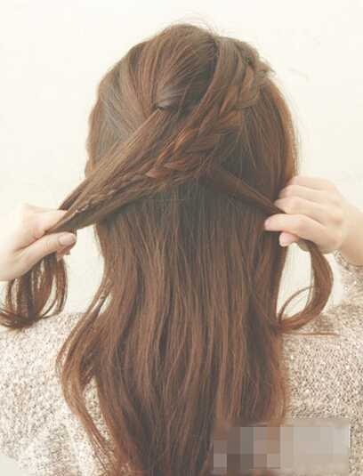 step7、下面的步骤是像鱼骨辫一样一边编一边往里加入头发,直至头发都编完;