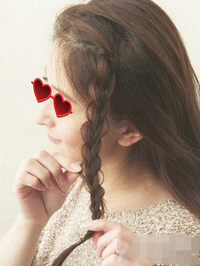 step2、从左侧刘海分界线的地方拿起一小束头发,分成三股,编麻花辫;