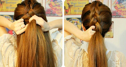 韩式编发教程03》》》》》将头发编到脖子处时,就将剩余的秀发再次使用麻花辫的方式一直往下编。