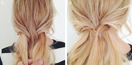 【花朵编发教程step02】利用橡皮圈固定之后,再微微地将秀发拉松,为整个发型制作凌乱的蓬松美感。