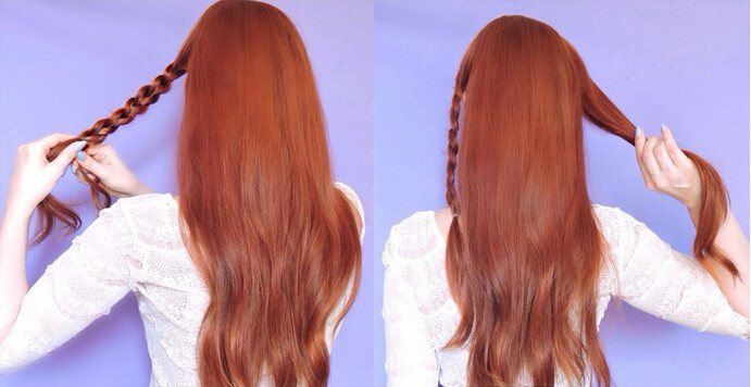 【韩式编发step02】然后再取出右边的秀发同样进行麻花辫的辫子手法。两条麻花辫编织完毕后,可以轻扯已经固定的辫子,让其更加地丰盈自然!