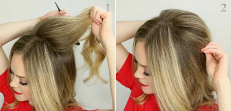【鱼骨辫教程step01】首先将长发梳理好之后,从头顶处取出三分之一的发量做好准备。