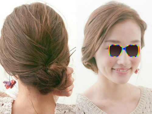 在将头顶与四周的头发拉扯得蓬松一些后,将辫子从下往上卷起,盘成一个低发髻,最后使用发夹固定造型就好了。