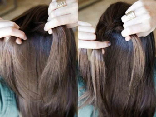 打理好头发之后,将发顶头发分成三小束,着手编一条三股辫。