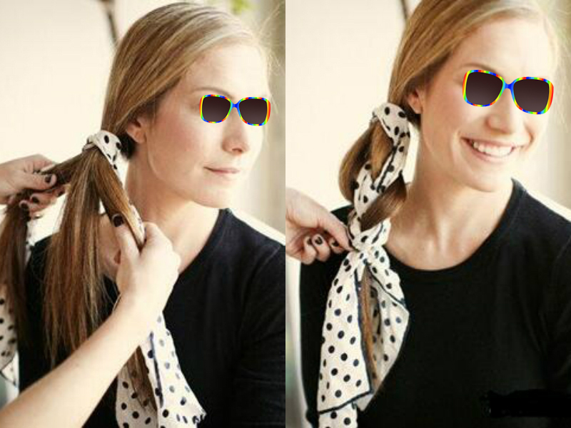 接着用橡皮筋将头发扎起来,将丝带绑进橡皮筋中固定起来,用丝带把橡皮筋缠绕起来隐藏好,不知道的人还以为你就用一条丝带就把头发绑好了呢。