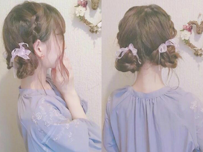 很多明星们都爱丸子头发型,而你呢?相信也不会例外吧,而这款发型是丸子头的升级版,日系双马尾丸子头,加入了编发的技巧,打造出很可爱,萌萌哒编发look,相信在看的妹子已经惊呼了,太卡哇伊了~~