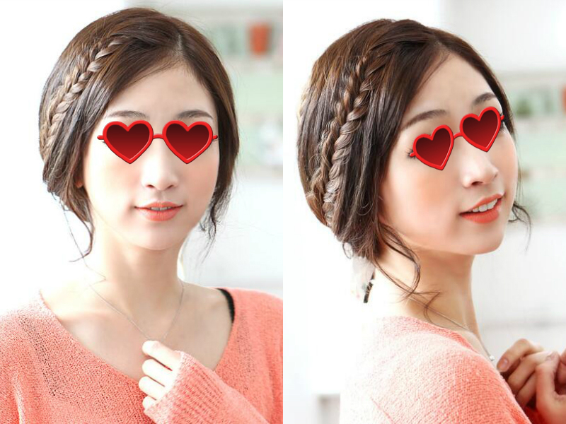 真是超级简单的一款编发,中分的刘海一边随意选出一束头发编成辫子,和头发扎个低马尾头发,两颊留点零散翘卷的头发把耳朵也遮住,就这样已经显得很有气质,真是回眸一笑百媚生。