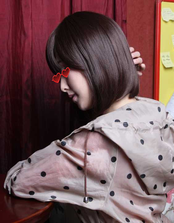直直的波波头短发,斜分的刘海,稍显酒红的发色,清纯中又透着几分时尚感,一个甜甜的微笑,好美哦,清爽甜美的一款波波头。
