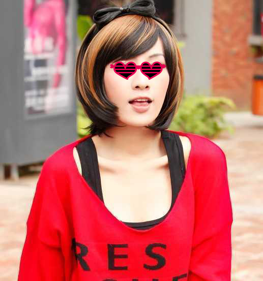 黄棕色和黑色的组合构造出个性一面,刻意分开的斜刘海,两颊内翘的发尾,不仅修饰了脸型还凸显出一股时尚味,2013选它绝对潮哦!