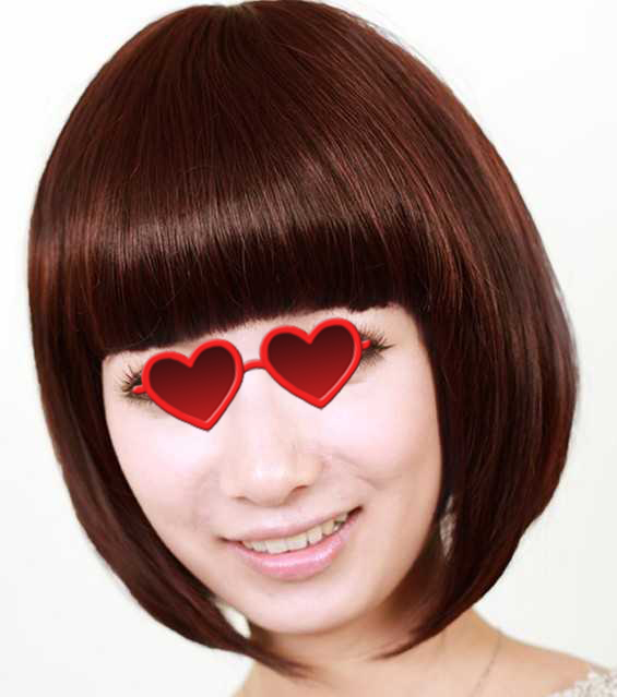 红棕色的发色很显眼,前面修齐的刘海展现出甜美风格,两颊内扣发尾,俏皮中有带点可爱感,还很修脸哟!