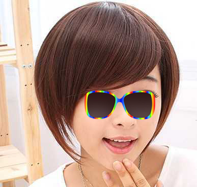 斜刘海的设计,两颊内扣发尾修炼效果最好,浅棕发色在2013开年为最流行发色之一,很显气质的波波头。