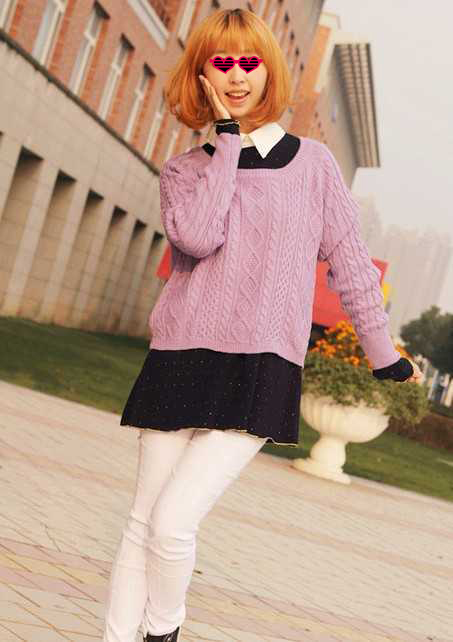 前面是碎刘海的打造,甜美范大增,内扣发尾,修脸效果超好!浅金黄发色,让你独领时尚秀!