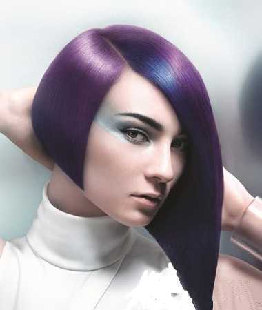 紫色的短发焕发出让人无法探索的神秘感,加上若隐若现的蓝色晕染,更是增加了这款波波头的立体感,左右不规则的发梢修剪,个性张扬,更显时尚感。