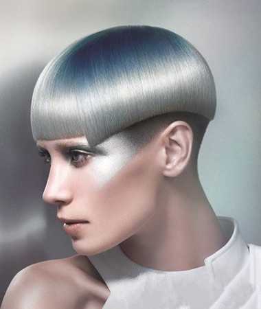 银灰色打底,冰蓝色上层的染发设计,具有超级强烈的未来感,渐变的过渡十分完美,增强了这款波波头的立体感,超短的波波设计也是让人倍感精神。