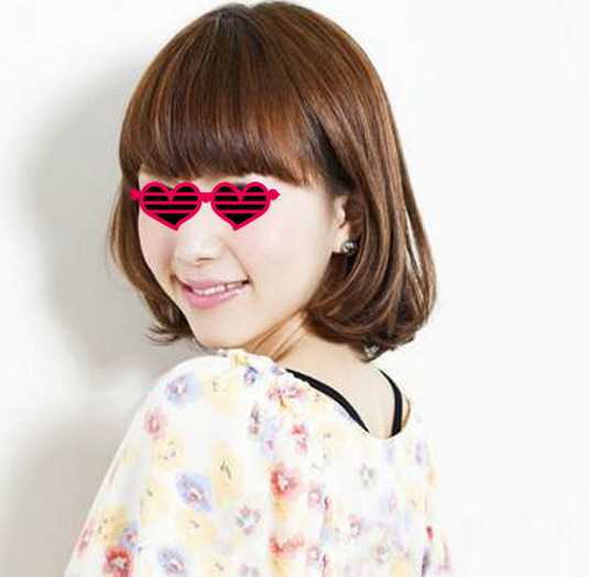可爱的短发波波头发型,厚感的齐刘海盖住额头上的缺点,而挂在耳朵上的头发略带点小清新甜美感,内扣的弧度卷发,凸显精致的五官很显小脸型,是款秋季不错的发型选择哦!