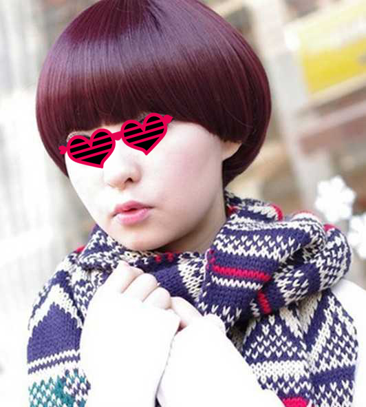 俏皮的短发波波头韩式造型,齐整修剪露耳的设计,尽显无比水灵可爱的大眼效果,棕红染发色是比较靓丽的高雅色调,冬日温暖吸睛。