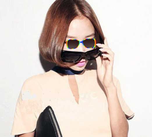 中分刘海设计的短发波波头,有着一股超时尚的御姐范感觉,甜美的粉色美妆,搭配时尚墨镜,又给人酷酷个性感呢!