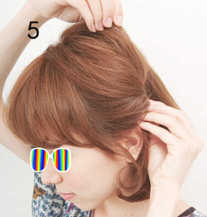 Sstep4:比例是4那边头发步骤Step3一样,向后扭转,再用隐形夹固定即可。