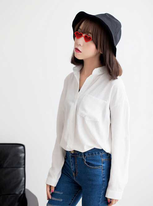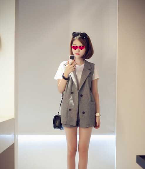 2、斜刘海韩式波波头短发,头发长度刚好及颌,发梢内弧,形成漂亮的弧度,也可以修颜哦,搭上墨镜,蛮酷的。