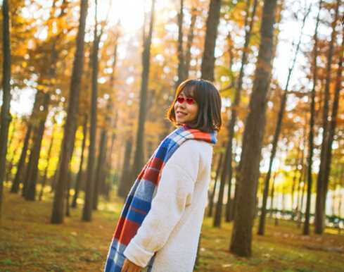 4、阳光下的女孩,清新又美好,刘海随意斜分,波波头短发被围巾拱起,头发呈现蓬松感,而脸蛋在蓬松短发的修饰下更为小巧好看。