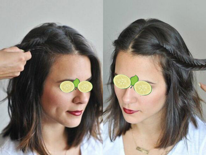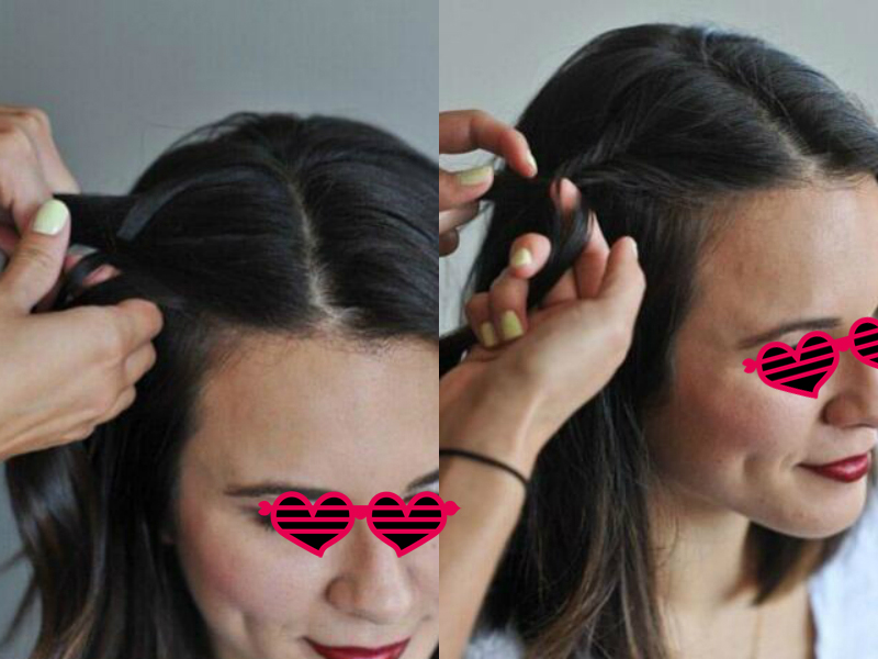 lob头编发步骤4》》》》》将另一侧的头发按照上述方法所示编成小辫子。
