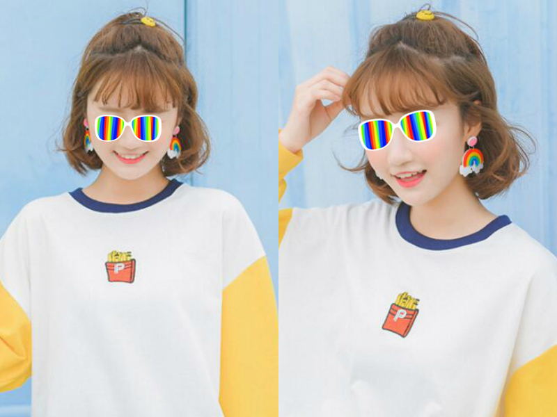 女生短发弄一个摩卡波波头真的很好看,灵动的烫卷发丝,搭配温柔内扣的空气刘海,很显女生的秀丽,扎起苹果头,戴上别致的彩虹耳饰,再加上温暖的发色,甜美可爱的少女感。