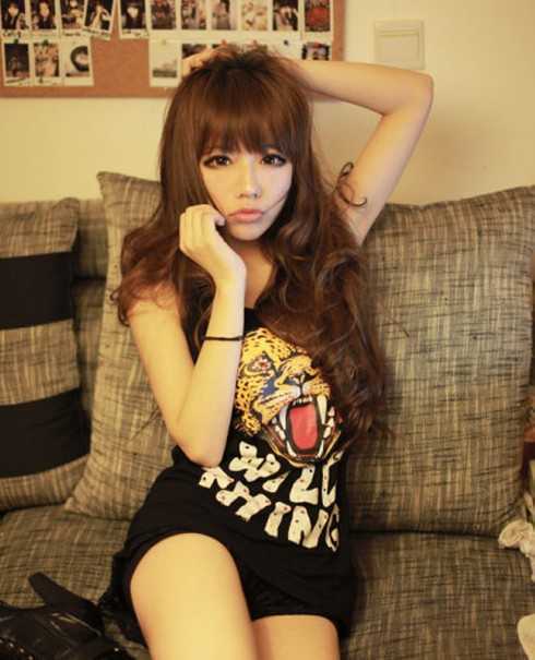 微卷是这款长发的特点,其融入了90后的个性,加上平平的刘海,超级可爱的!看上去,非常惹人怜爱!