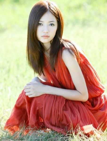 很自然的长直发,中分的造型,显得很小清新,很清纯,绿草地的衬托,给人一种很单纯,很完美的形象。