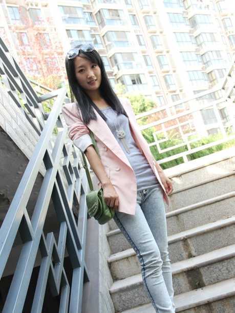 乌黑的头发无论什么时候看起来都是如此健康舒服,斜刘海添了几分甜美,拨上头顶的墨镜,添了几分气质。