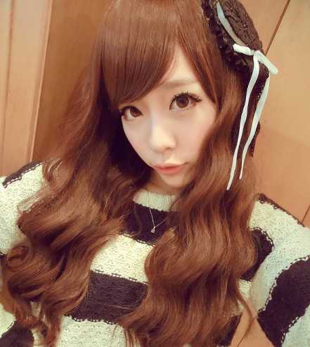 很好看的一款亚麻色斜刘海长玉米烫发型。斜刘海的打造给人甜美感,还有着很好修饰脸型效果,两颊长的发尾很自然散落在肩上很淑女的感觉哦!