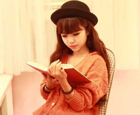 她在干什么?看书?好认真的表情哦!戴上一顶帽子,瞬间,潮流感增添。