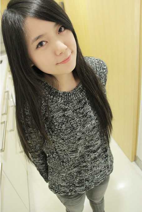 斜刘海的清纯小麻豆演绎直发,很美哦,柔顺光亮的乌黑直发,很漂亮,有点邻家小女生感觉,这样的长直发2013也很受欢迎哦!
