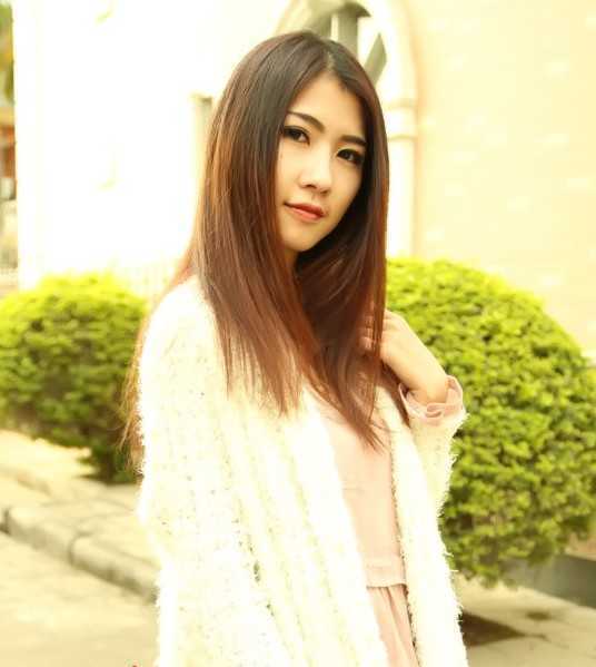 四六分刘海,中长直发,显得清纯甜美,黄棕色头发,碎直的发丝,发丝具有修脸效果,很赞哦。